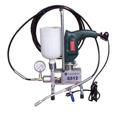一台完整的灌浆机主要由电钻、机箱、支架、料杯、泵浦、三通、压力表、高压管以及开关阀组组成。机身本体仅重7.5公斤,携带省力移动方便。它彻底解决了依赖传统手压气源作动力及携带笨重机械的不便;结构设计科学简易,不需特殊训练即可维修,并新添加了人性化的自吸进料系统。其利用机械的动力,可在3-6秒内提升至4500psi(300kg/cm2)以上工作压力,将液体的止水剂可有效灌注至0.1mm的细微裂缝中,施工效率较传统技术快三倍以上,防水止漏效果更为持久有效。是建筑工程、地下工程、水利工程、环保工程、市政、地铁、隧道、涵洞工程止渗堵漏施工、裂缝补强的首选设备,是专业止水施工者最佳的选择。